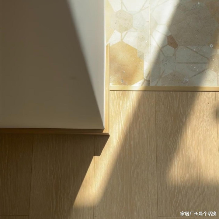 3,好看。不同材质当然区分了空间,卧室木地板让东谈主收缩,客厅瓷砖显得整洁,各有各的氛围,反而比“一铺到底”更有条理感,颜值少量也不低。