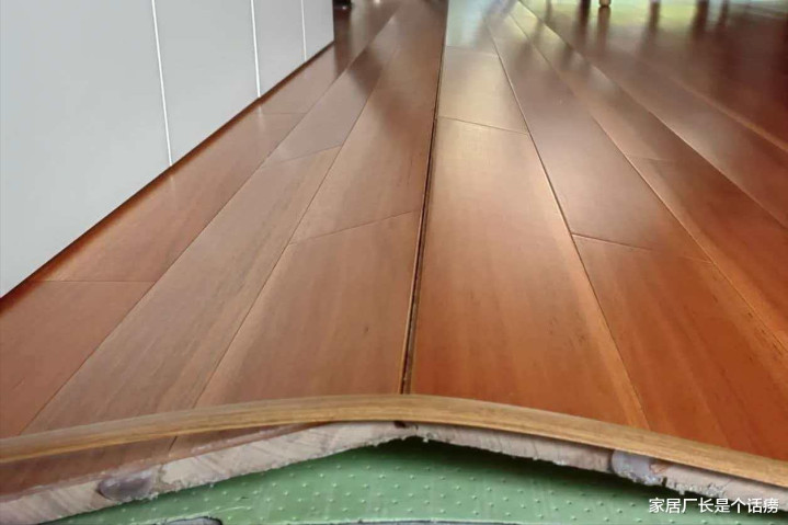 夏天湿度一大,地板彭胀,径直“起拱”——即是地板中间饱读起来,像海浪同样,踩上去咯吱咯吱响,跟踩在跷跷板上似的。严重的时候能把踢脚线顶掉,甚而把墙皮撑裂。