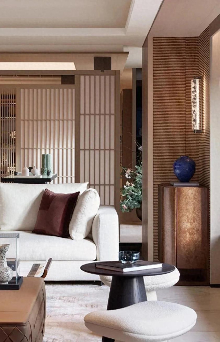 Entering the indoor space from the elevator hall, the natural wood texture is gradually laid out. Guided by a coherent spatial flow, the entrance screen is designed as the primary visual node for landing. Replacing complex decorative shapes with fine grilles, balancing spatial occlusion and visual transparency, perfectly handling the transition interface from external public spaces to internal private spaces.