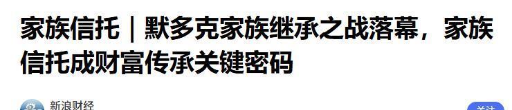 新浪财经 2025-09-17——家眷相信|默多克家眷领受之战遣散,家眷相信成钞票传承关节密码