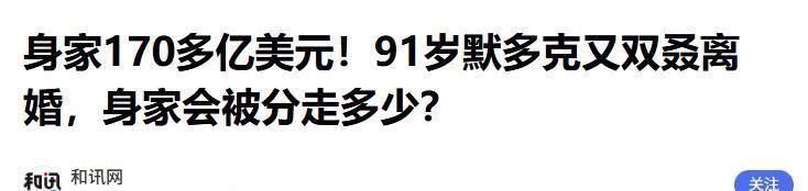 和讯网 2022-08-12——身家170多亿好意思元!91岁默多克又双叒离异,身家会被分走几许?